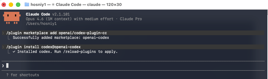 /plugin install codex@openai-codexAfter that, reload plugins: